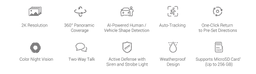 /دقة تصوير 2K تغطية بانورامية بزاوية 360 درجة / اكتشاف الشكل البشري / شكل المركبة باستخدام الذكاء الاصطناعي / التتبع التلقائي / رؤية ليلية بالألوان / إمكانية التحدث والاستماع /